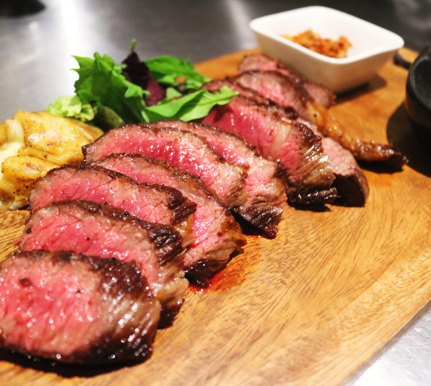 サーロインステーキをケイジャンスパイスでシーズニングし、特製のシグネチャーソースで味わい深く仕上げました。