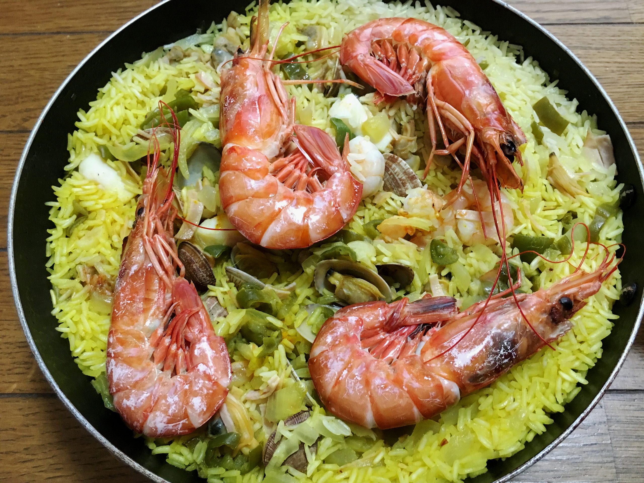 エビとタイ米のグリーンパエリア